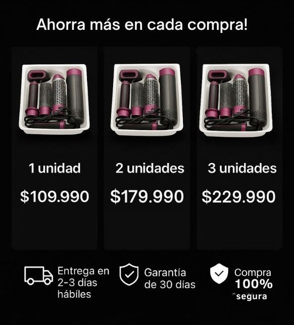 Daniela H. Medellín · hace 1 semana ★★★★★ Antes tardaba 40 min entre secador y plancha; ahora con el 5 en 1 quedo peinada en 15 min y con volumen natural. Compra verificada